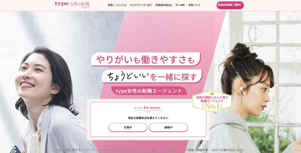 Type.女性の転職AGENTは、キャリアアドバイザー自身の転職経験や子育て経験を活かしたサポートが受けられます。